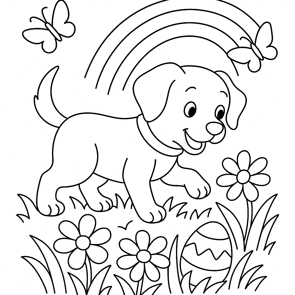 Join a curious puppy on an Easter egg hunt in the garden, full of surprises and springtime fun.