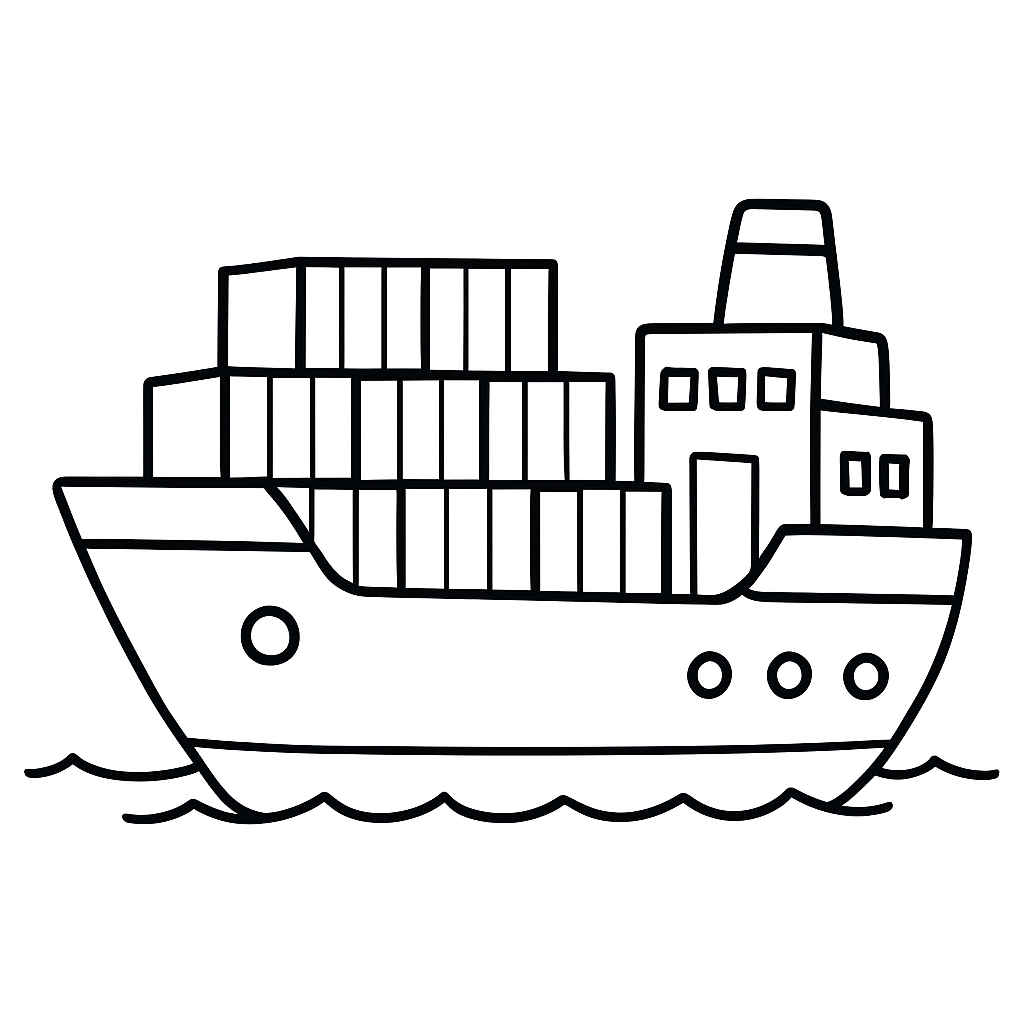 Ein großes Frachtschiff beladen mit vielen Containern auf …