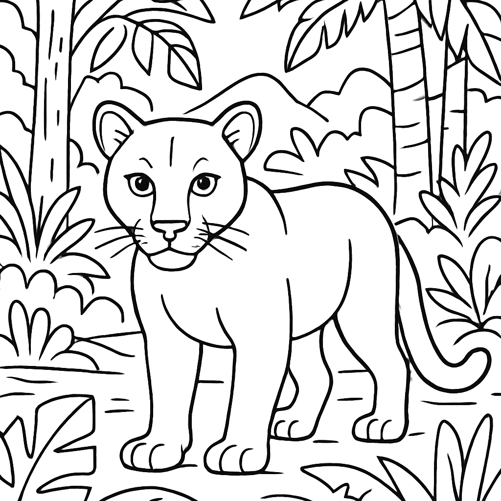 A majestic puma surrounded by lush rainforest greenery, blending into its natural habitat.